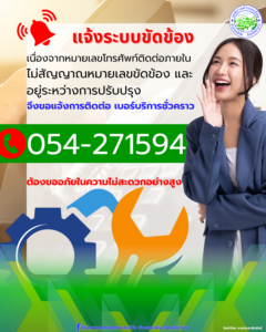 เนื่องจากหมายเลขโทรศัพท์ติดต่อภายใน สำนักงานเทศบาลตำบลแจ้ห่ม ไม่สัญญาณหมายเลขขัดข้อง และอย…