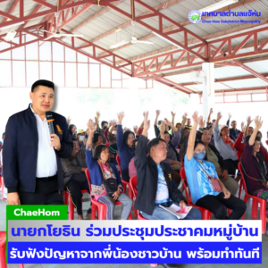 นายโยธิน มณีคงฤทธิ์ นายกเทศมนตรีตำบลแจ้ห่ม พร้อมคณะผู้บริหาร สมาชิกสภาเทศบาล และเจ้าหน้าที่ที่เกี่ยวข้อง เข้าร่วมประชุมประชาคมหมู่บ้าน บ้านป่าแดด หมู่ที่ 2 และ บ้านเด่นหนองนาว หมู่ที่ 8