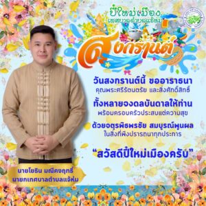 13 เมษายน 2569 วันมหาสงกรานต์ “สวัสดีปี๋ใหม่เมืองครับ” นายโยธิน มณีคงฤทธิ์ นาย…