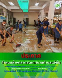 ประกาศ แจ้งกำหนดการล้างตลาดสดเทศบาลตำบลแจ้ห่ม ประจำเดือน พฤศจิกายน 2568