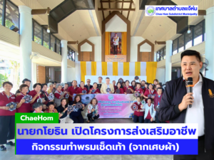 นายโยธิน มณีคงฤทธิ์ นายกเทศมนตรีตำบลแจ้ห่ม เป็นประธานเปิดโครงการส่งเสริมอาชีพ ประจำปีงบประมาณ พ.ศ. 2569 (กิจกรรมทำพรมเช็ดเท้าจากเศาผ้า) ณ หอประชุมเทศบาลตำบลแจ้ห่ม